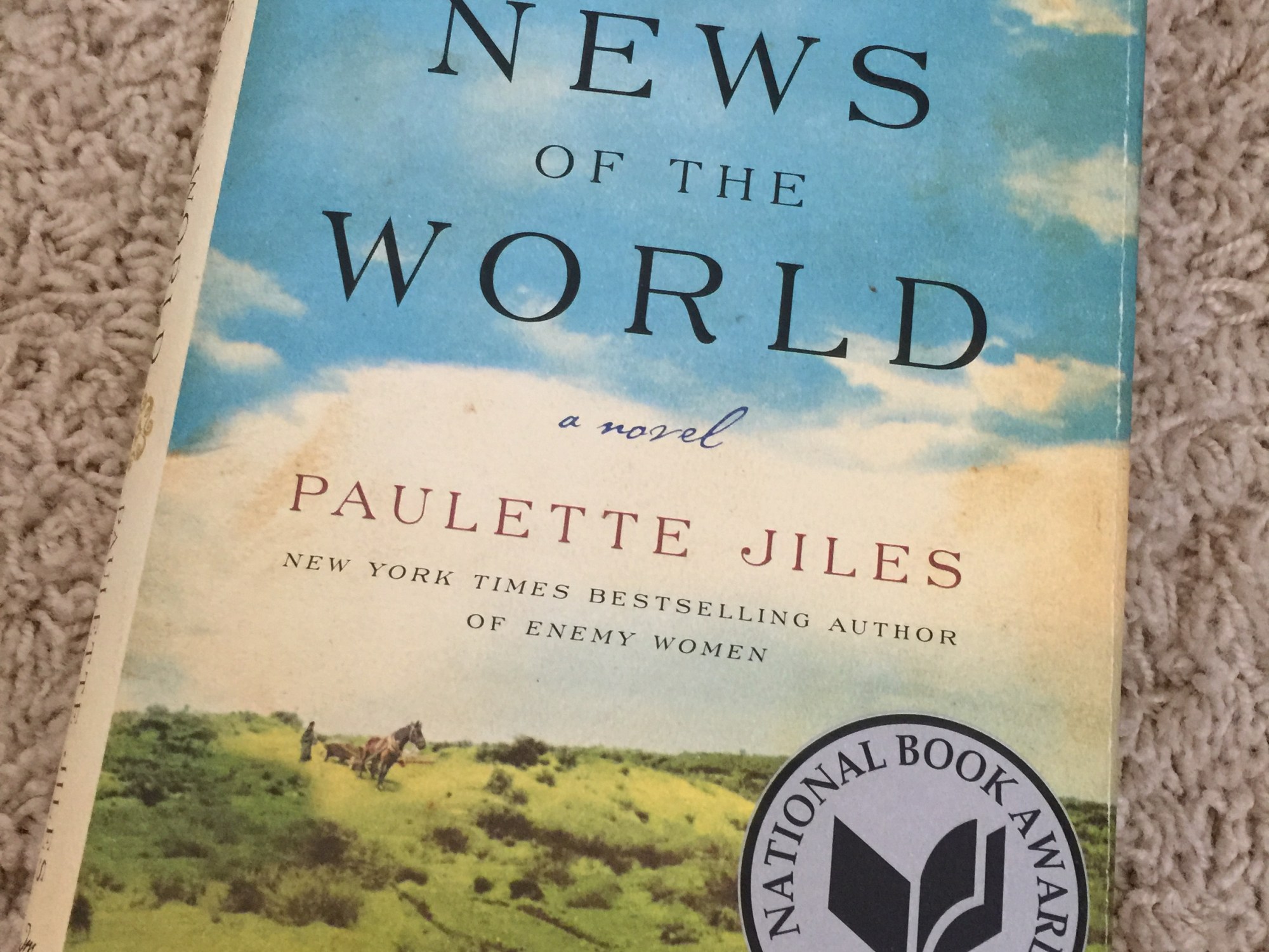 This was a different kind of read for me. I’m still trying to sort my thoughts on it, so bear with me. The time period is shortly after the Civil War, and the setting is Texas. There is a man whose job it is to buy newspapers, travel throughout Texas, and read them out loud to paying audiences in small towns who would otherwise have no news of the outside world. (Um…I’d love this job: reading to a paying audience? sign me up!)